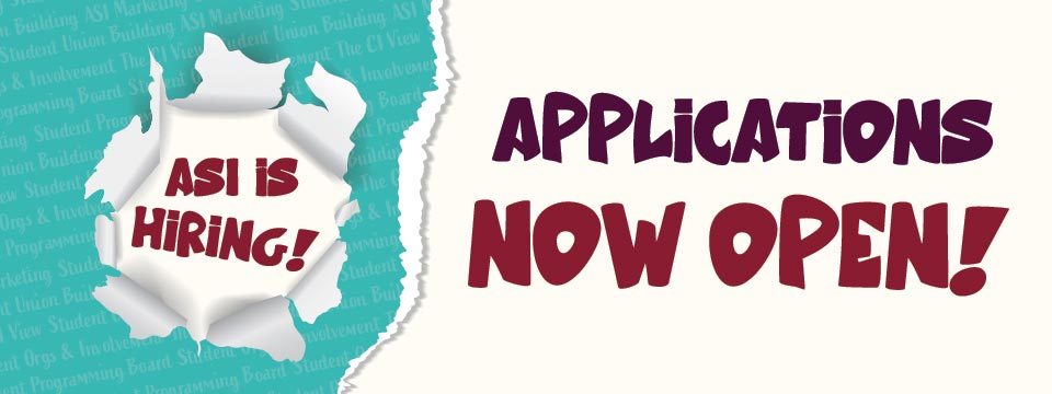 Thank you for your interest in Associated Students Inc. (ASI): Student Union, Student Government, Student Programming Board, The CI View - student news, Graphic Design & Marketing, Leadership & Involvement, Student Organizations & Involvement, and Graduate Assistant student leader positions. Student positions within ASI are extraordinary para-professional leadership opportunities.